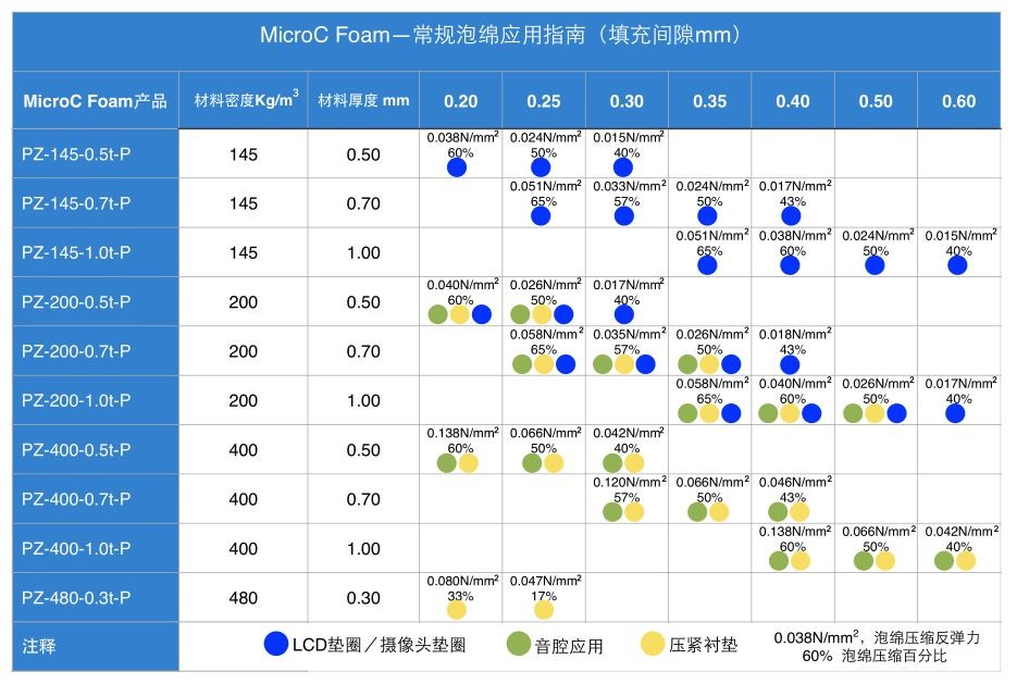 如实际填充空间0.20mm对应PZ-145-0.5t-P和PZ-200-0.5t-P两款材料符合LCD垫圈应用,客户可以根据经验进行筛选或者通过装机测试来确定。